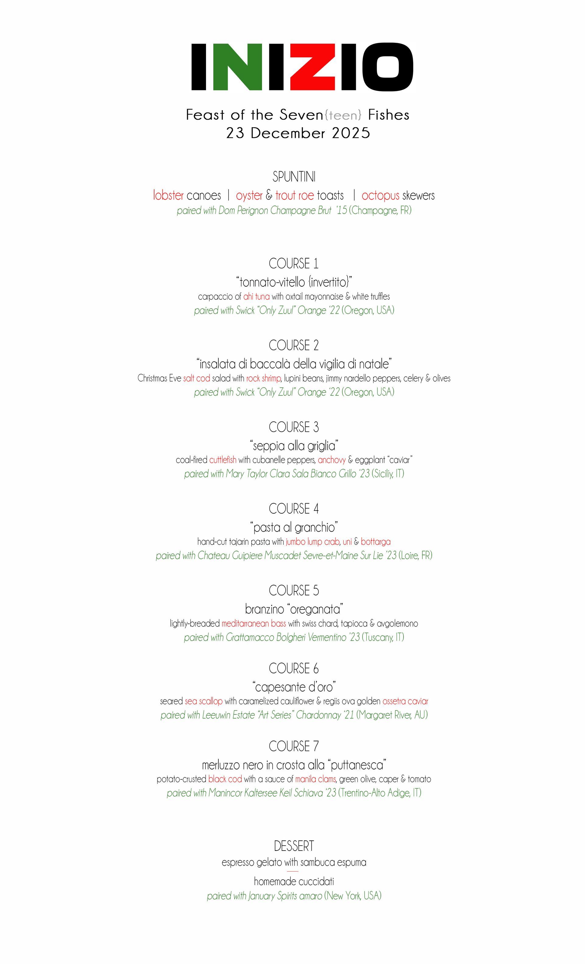After a few years where destiny had other plans for us, we are finally bringing back our Christmas classic Feast of the Seven Fishes. This time around we are including 17 sea creatures on the menu. A seafood lover's dream!